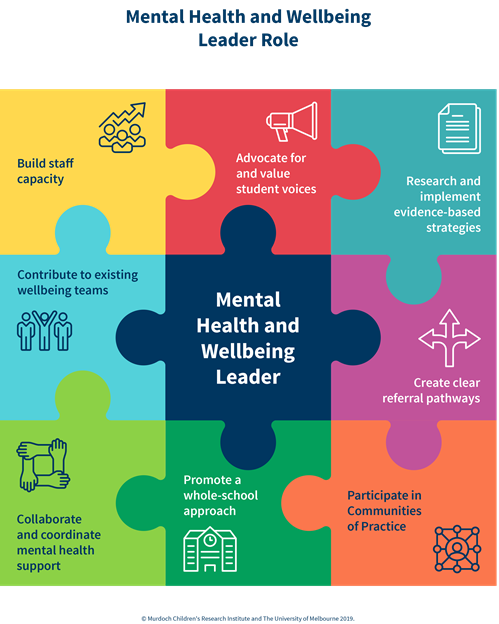 The program supports a whole-school approach to mental health and wellbeing, with the appointment of a dedicated Mental Health and Wellbeing Leader. This role is distinct from allied health wellbeing roles as it is not designed to provide one-to-one counselling but instead aims to: